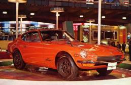The 16th Tokyo Motor Show was held at Harumi. Also the Tomei Expressway opened in March this year and the demand for high-speed driving was growing rapidly in Japan. Significant progress was seen in the performance of Japanese vehicles. The 16th Tokyo Motor Show was highlighted by an array of sports cars and vehicles for motor sports. At the same time, many show models were displayed in the futuristic “dream cars” and commuter model categories, which were developed under the key concepts of high-speed and safety. Nissan used the 1969 Tokyo Motorshow to introduce the Nissan Fairlady Z, the Fairlady Z432 and the Datsun 240Z.